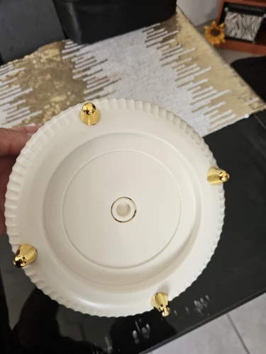 Gold-plated feet enhance style and protect surfaces.